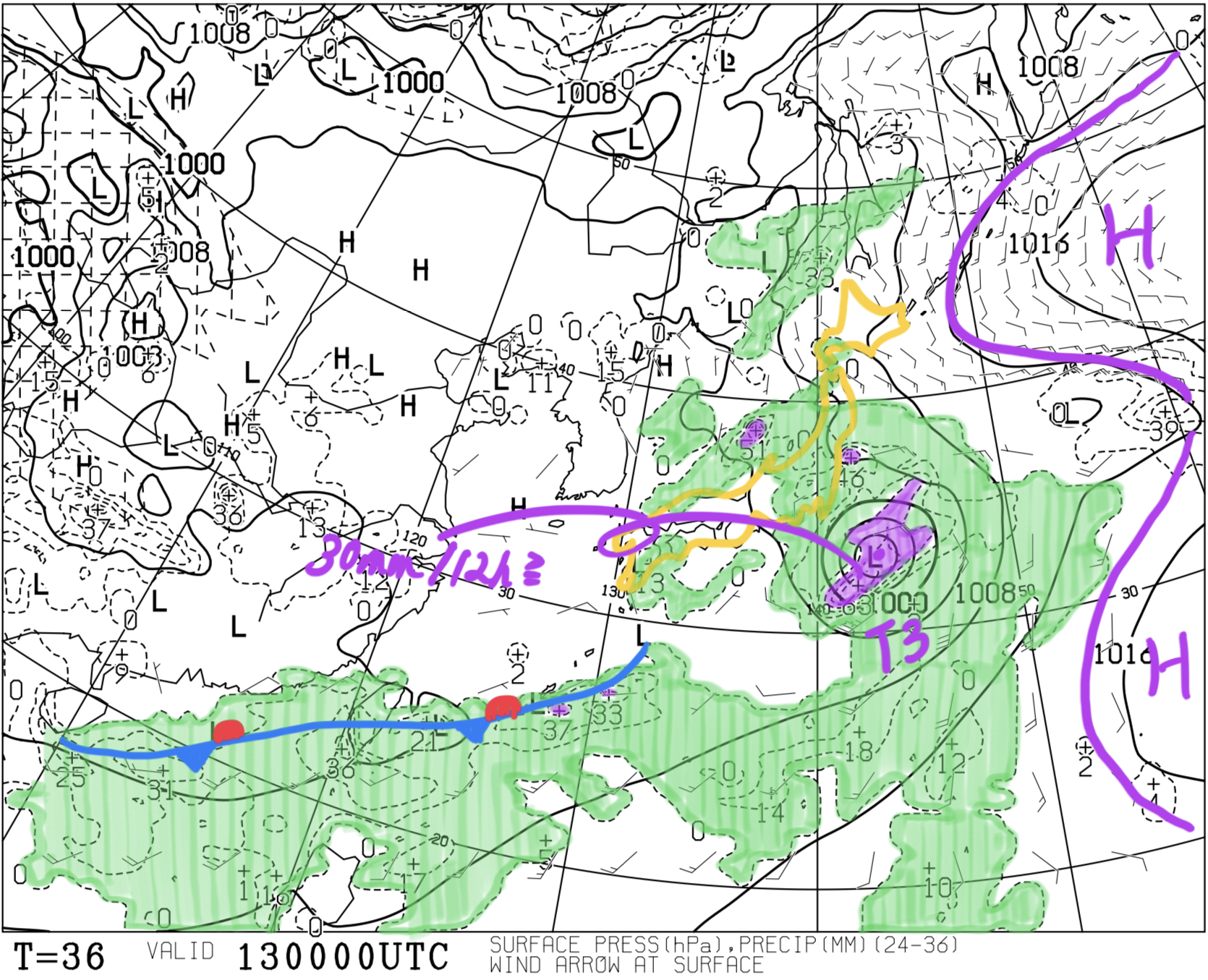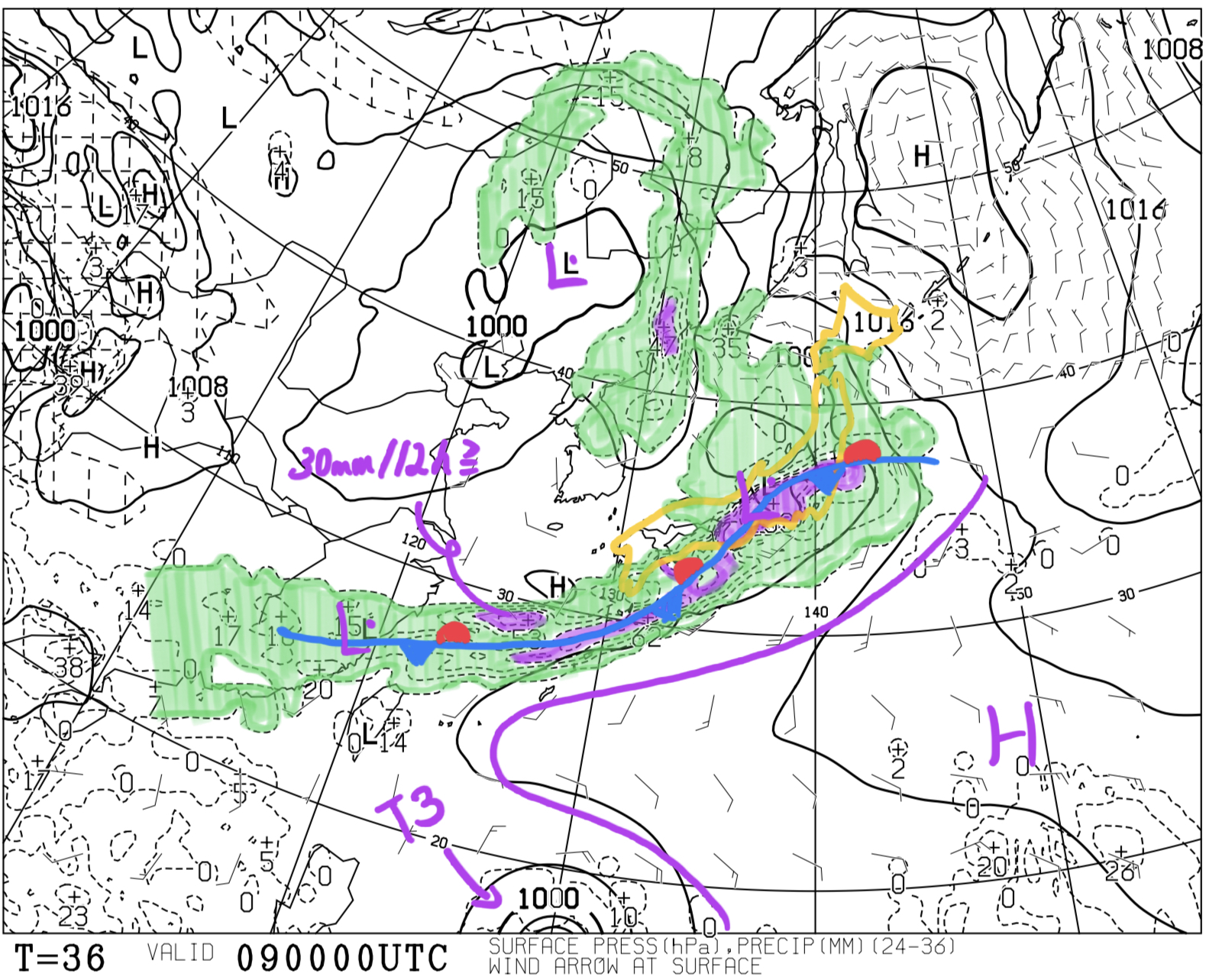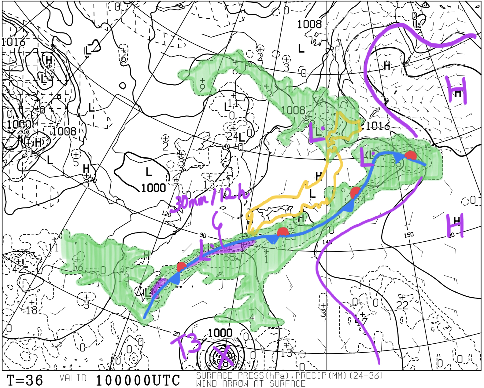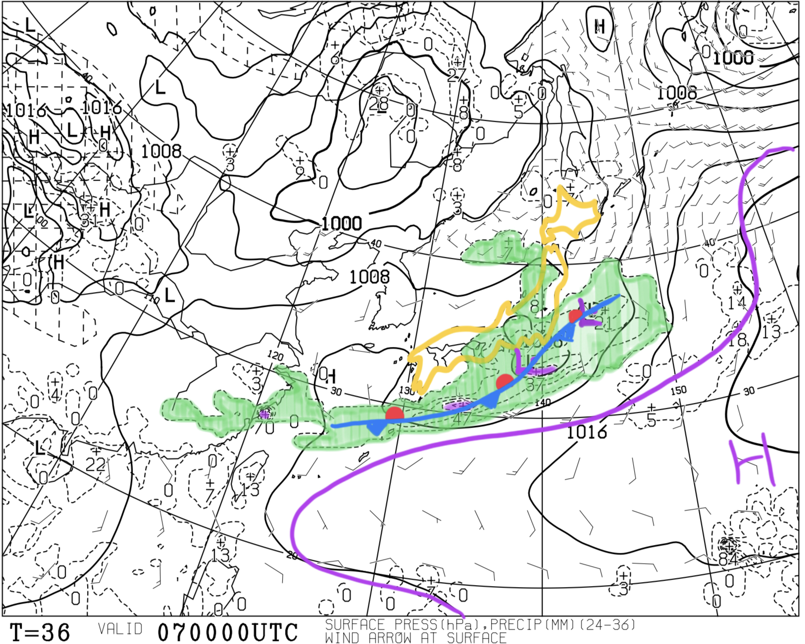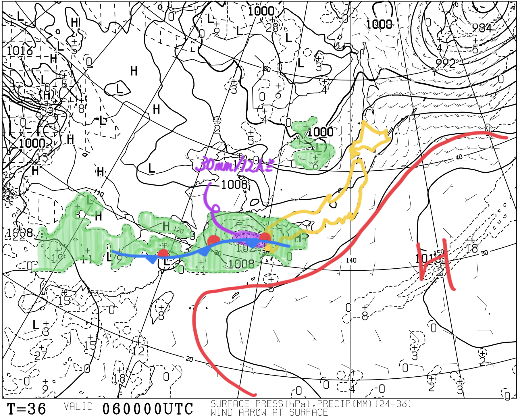 日々の天気図解析 2023/06/13 09:00の予想天気図