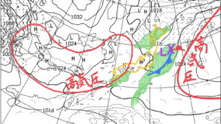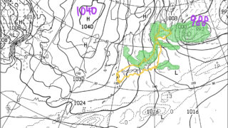 東日本で午前中は雨~曇のところも、次第に回復する。地上(等圧線・前12時間降水量)日本海の低気圧は北海道の北を通り、太平洋へ抜けていく。寒冷前線の特徴は少なく、消えそうな前線として描画した。西日本は高気圧が覆い、低気圧と高気圧が交互に通過す...