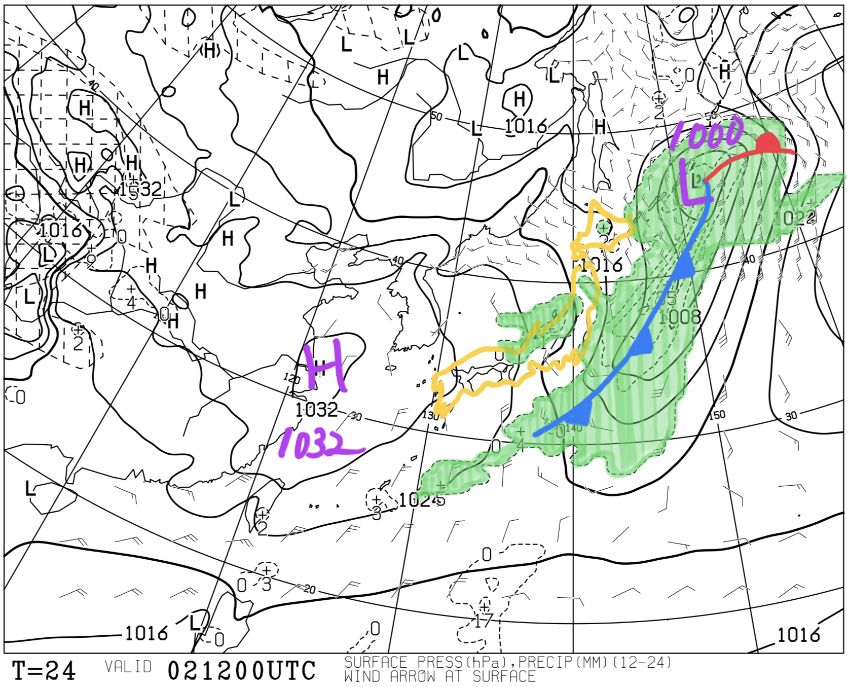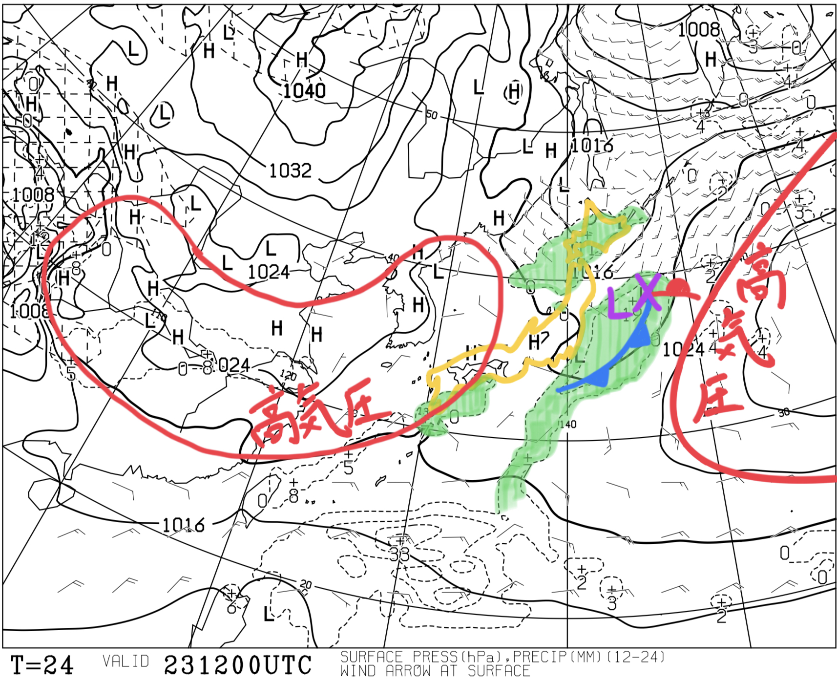 日々の天気図解析 2023/03/11 21:00の予想天気図