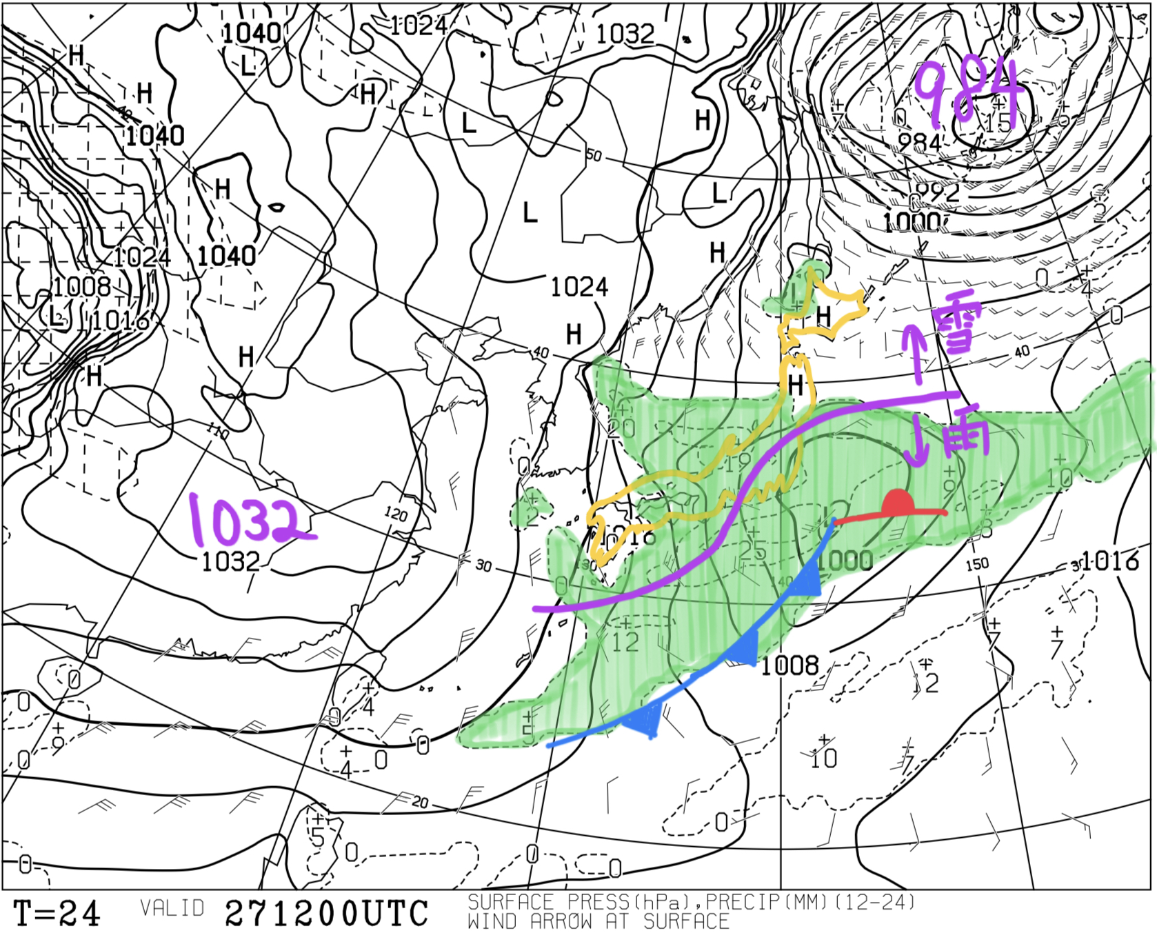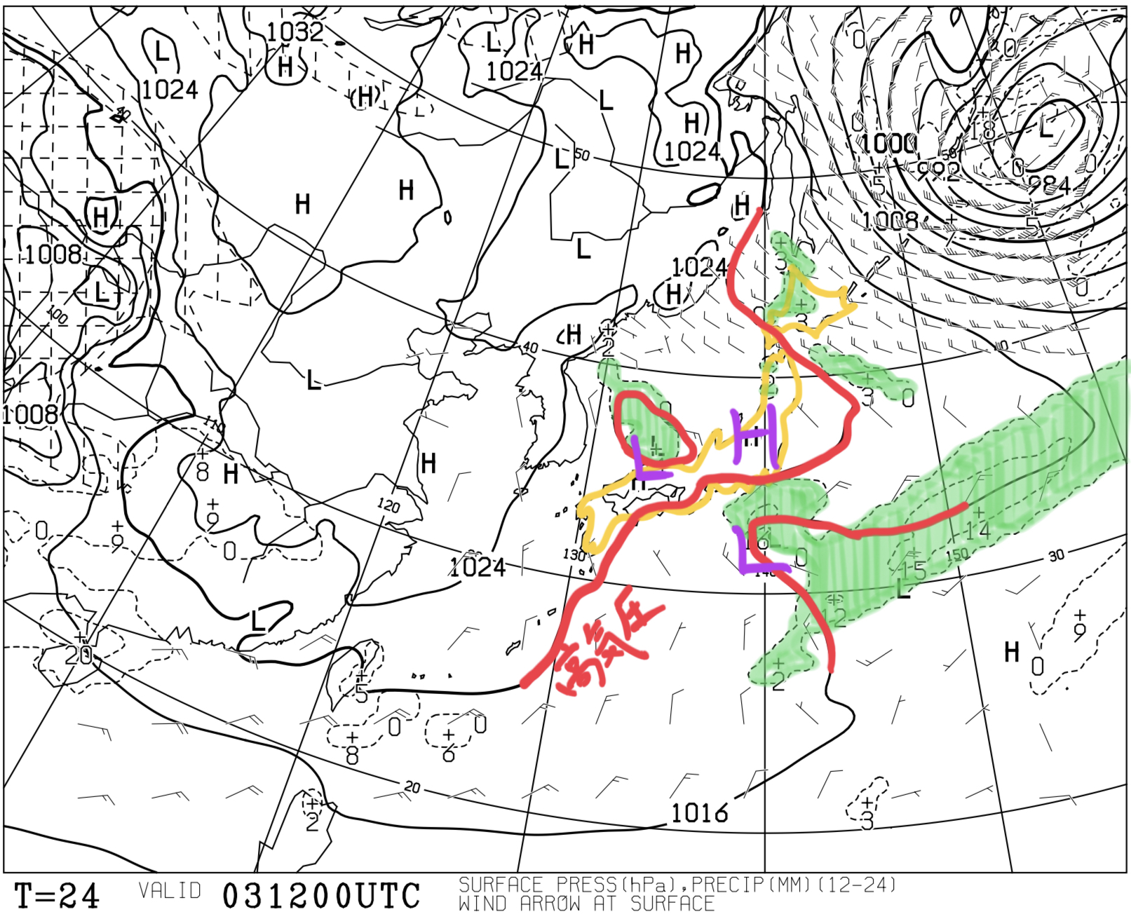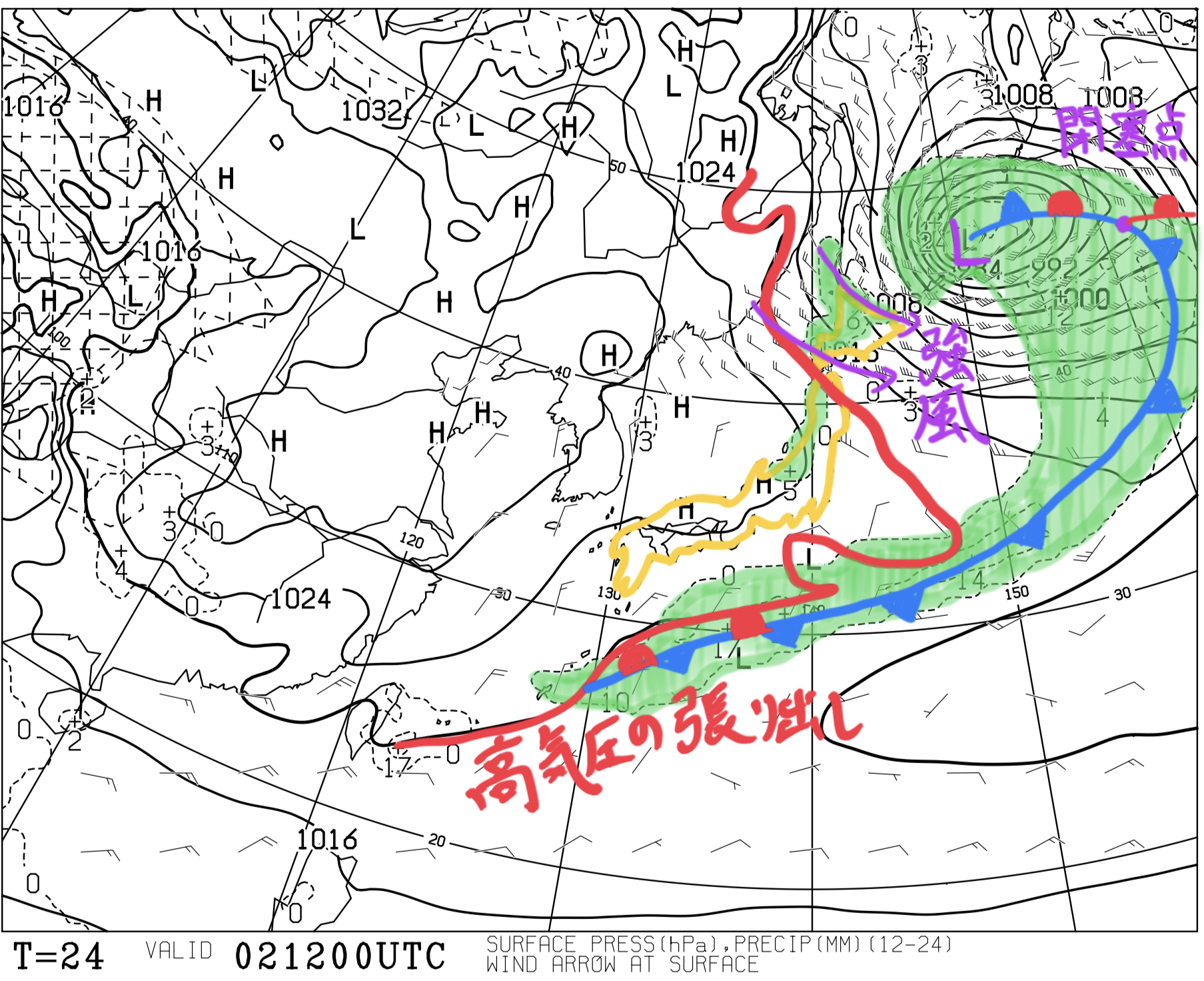 日々の天気図解析 2023/02/05 21:00の予想天気図