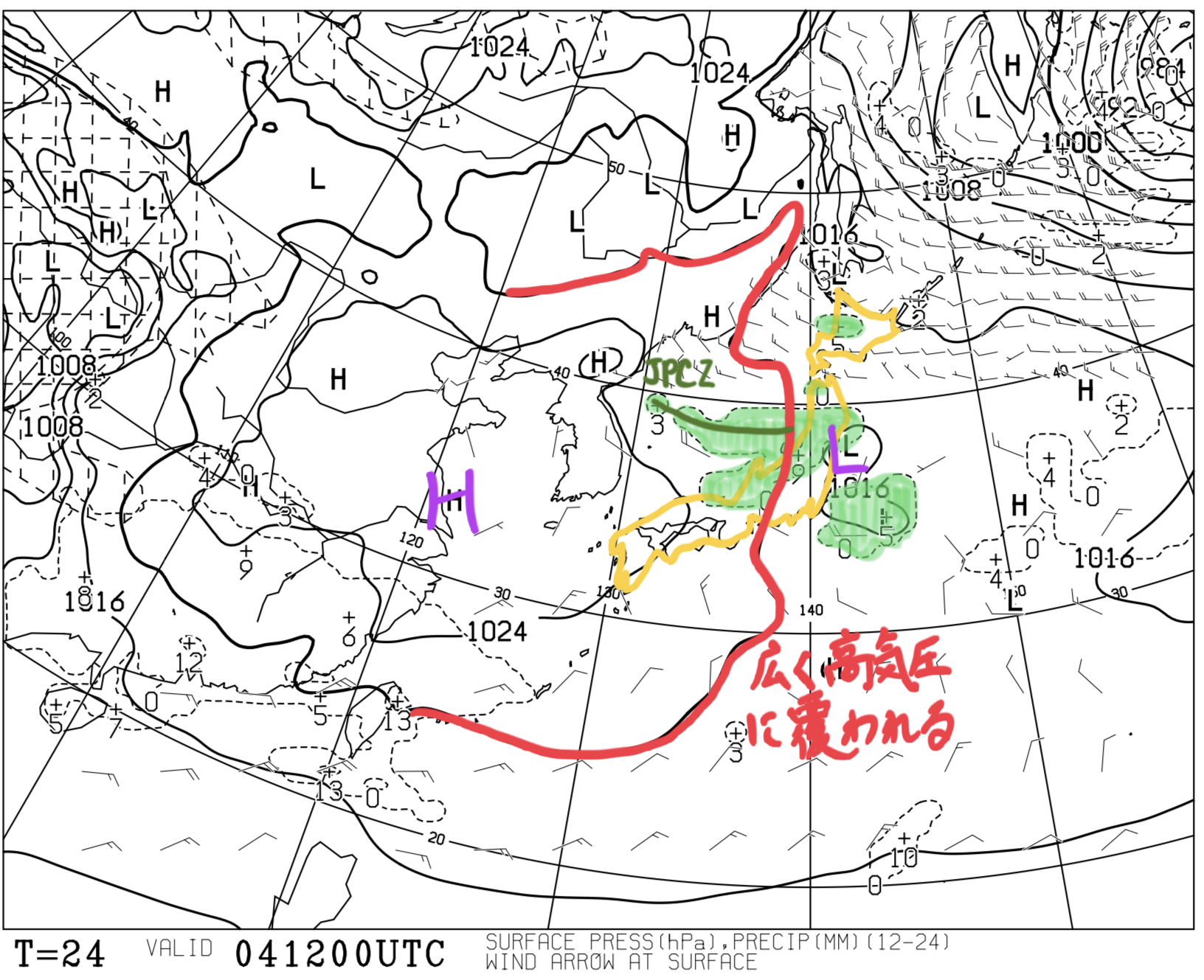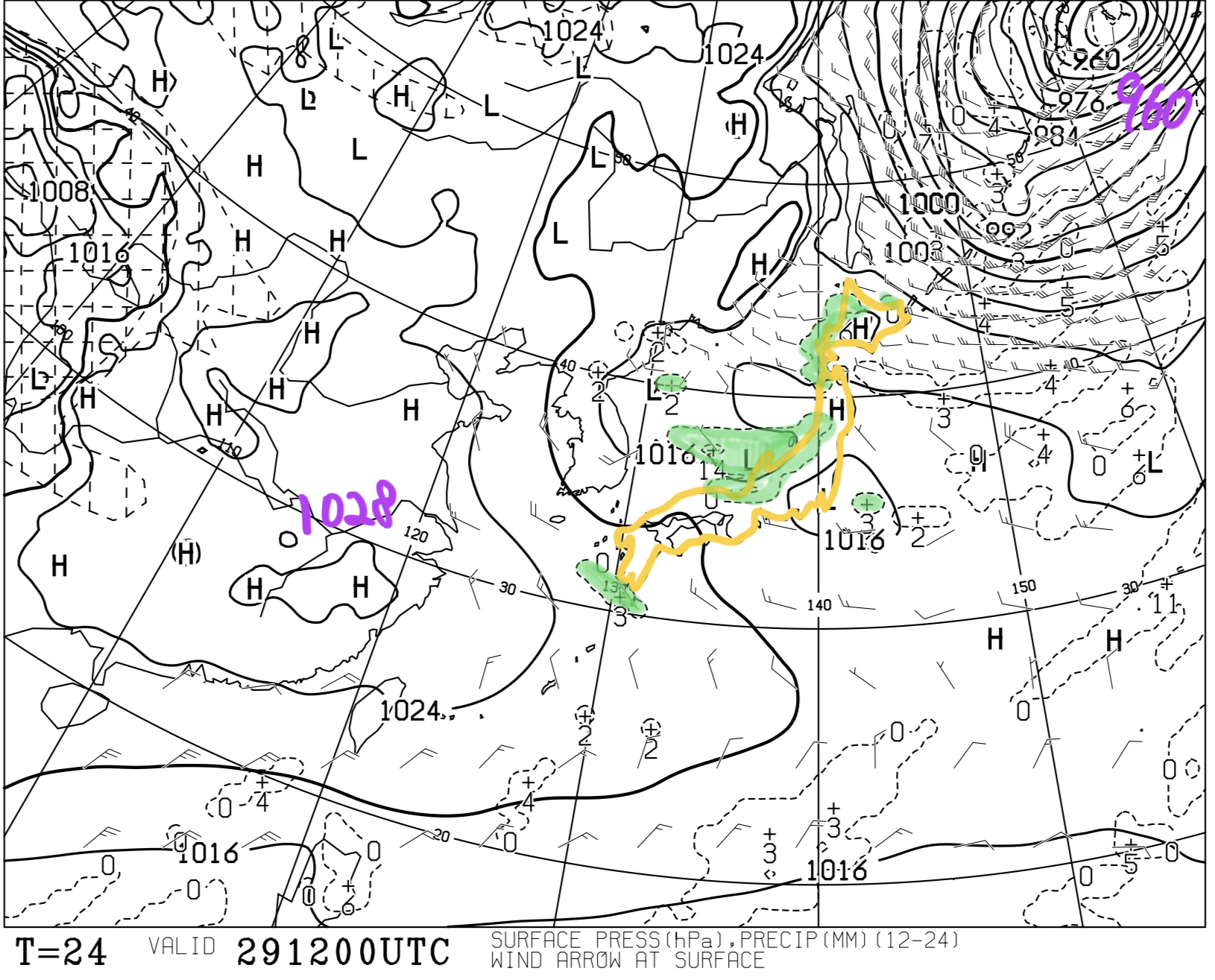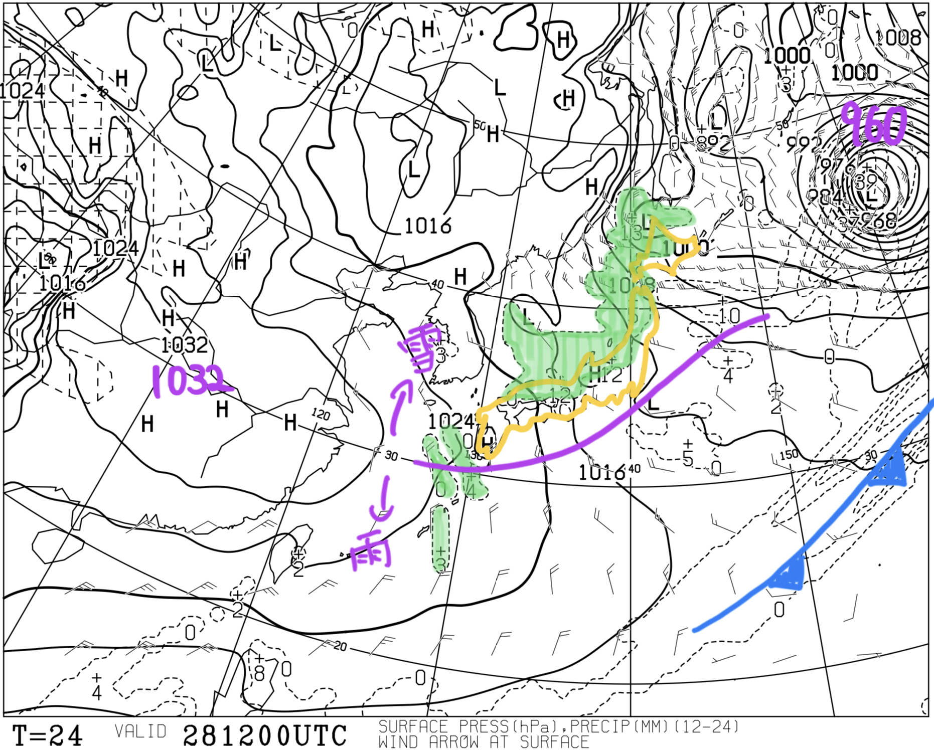 日々の天気図解析 2023/02/05 21:00の予想天気図