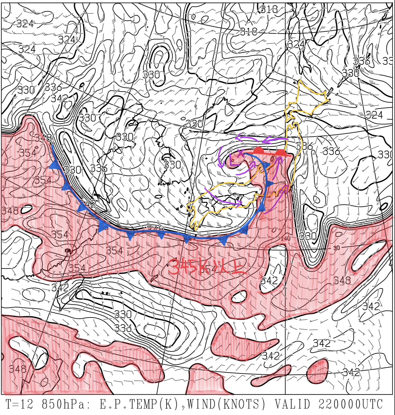日々の天気図解析 2023/01/04 21:00の予想天気図