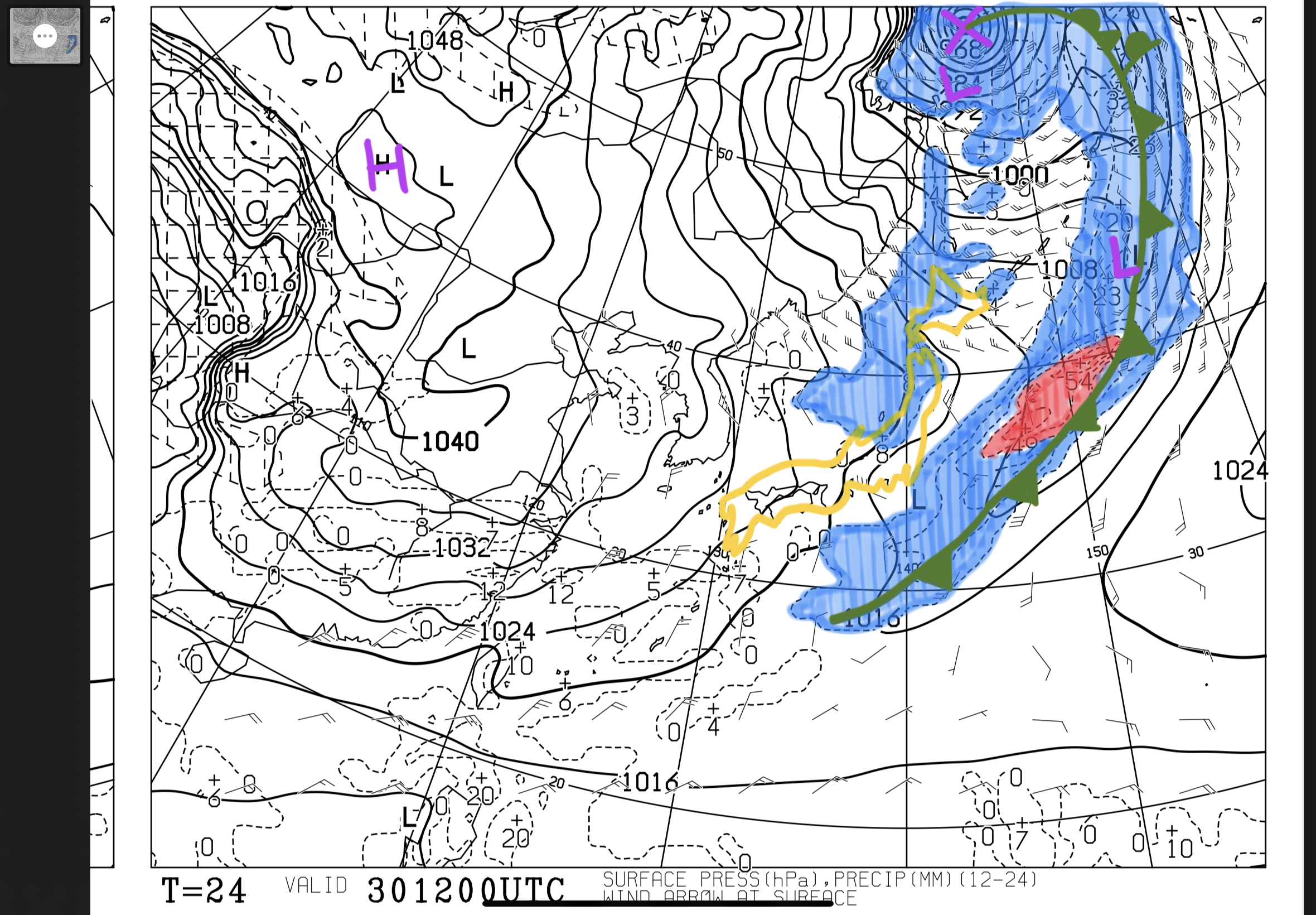 日々の天気図解析 2022/11/30 21:00の予想天気図