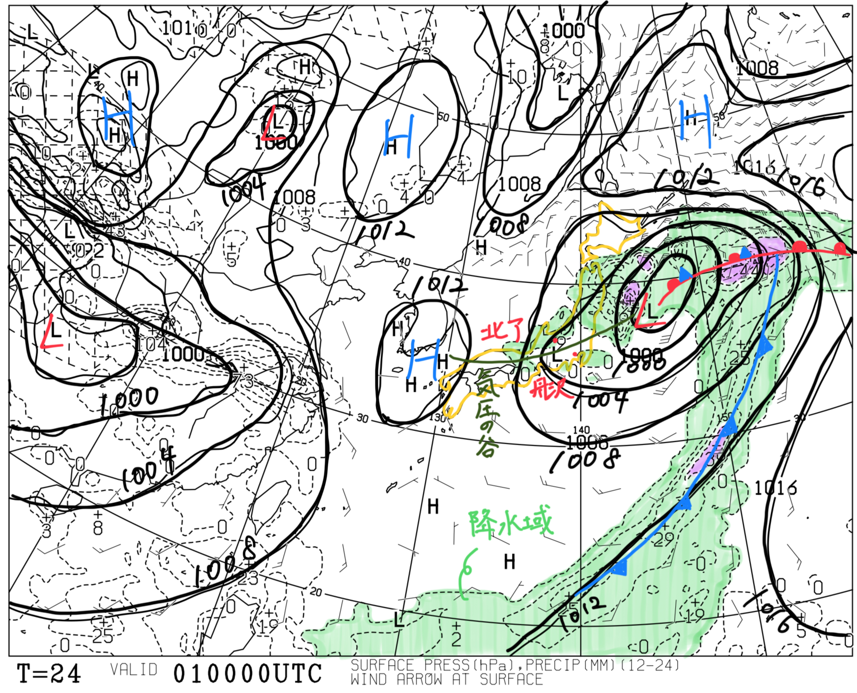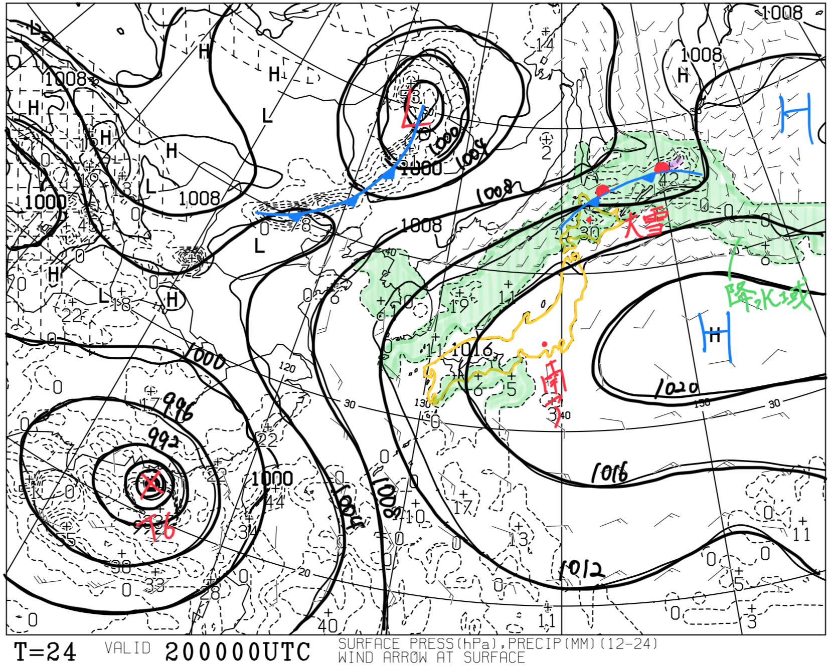 日々の天気図解析 2025/07/20 09:00の予想天気図:南ア・大雪