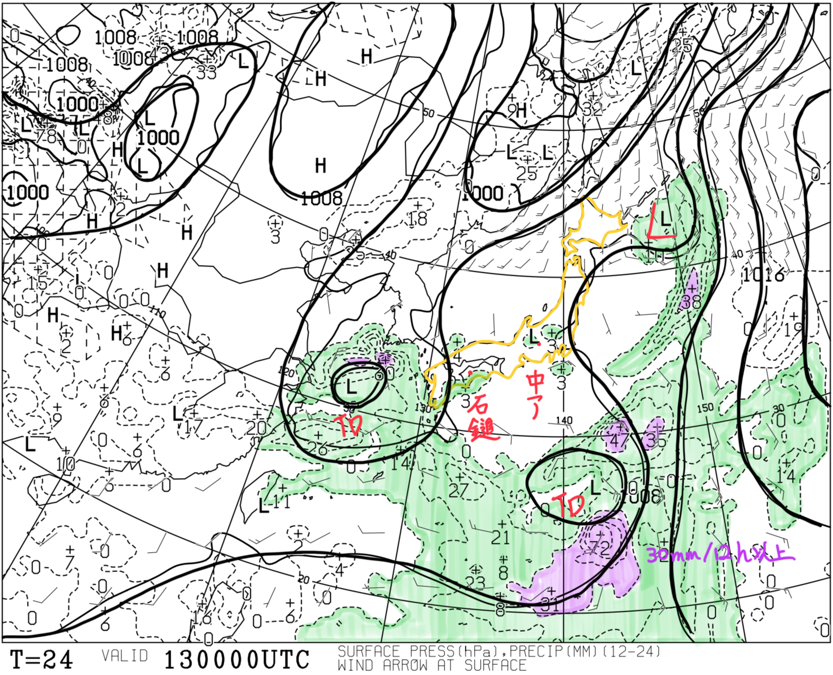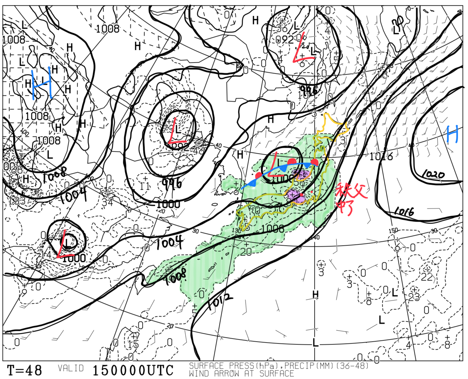 【予想時刻T=0: 2025/07/19 09:00】まとめ本州以南は高気圧に覆われ、朝は安定している。南アも晴れる。太平洋高気圧の縁にあたるエリアでは荒天の予報。北海道の周辺では太平洋高気圧とオホーツク海高気圧との境界に前線が形成され、大...
