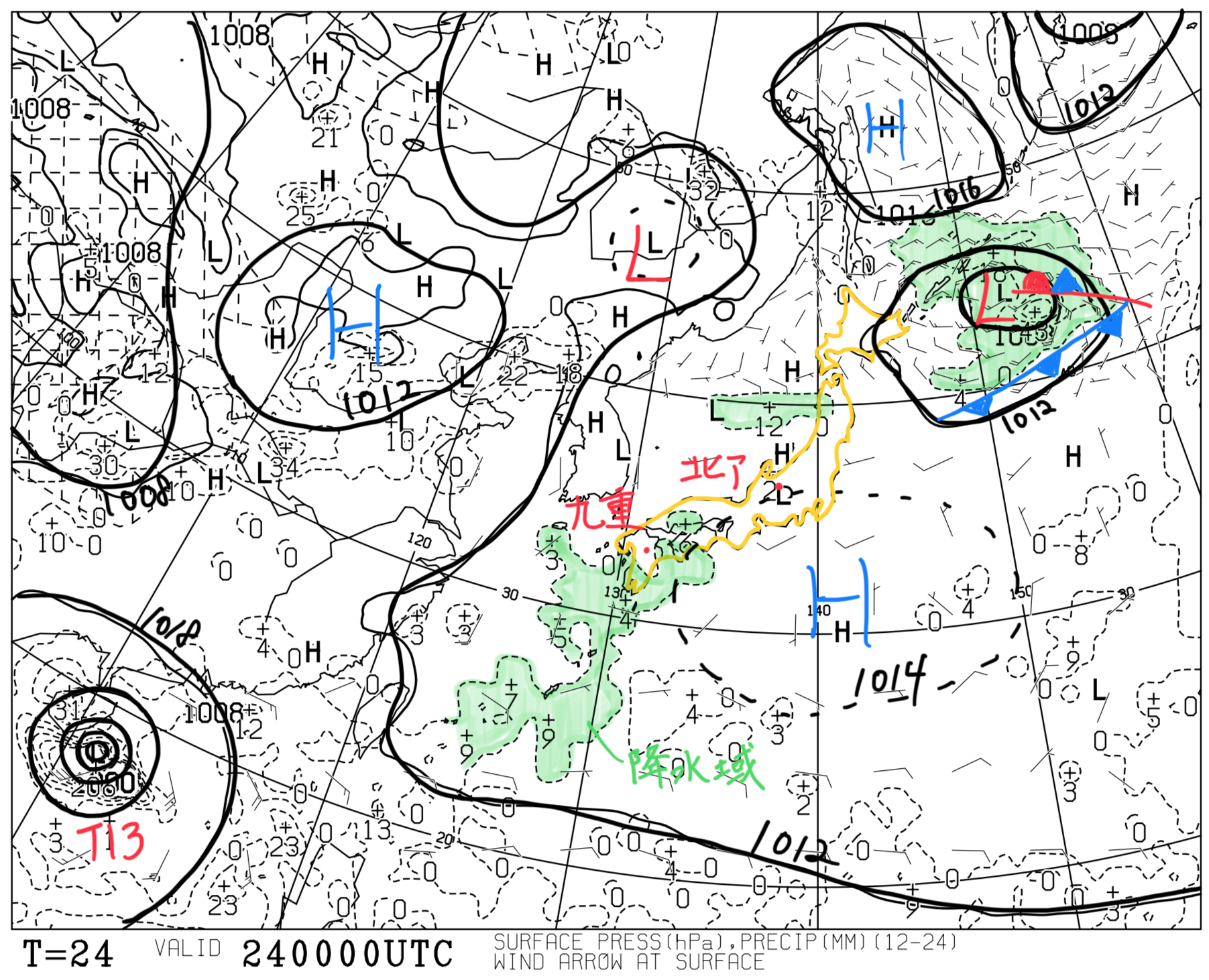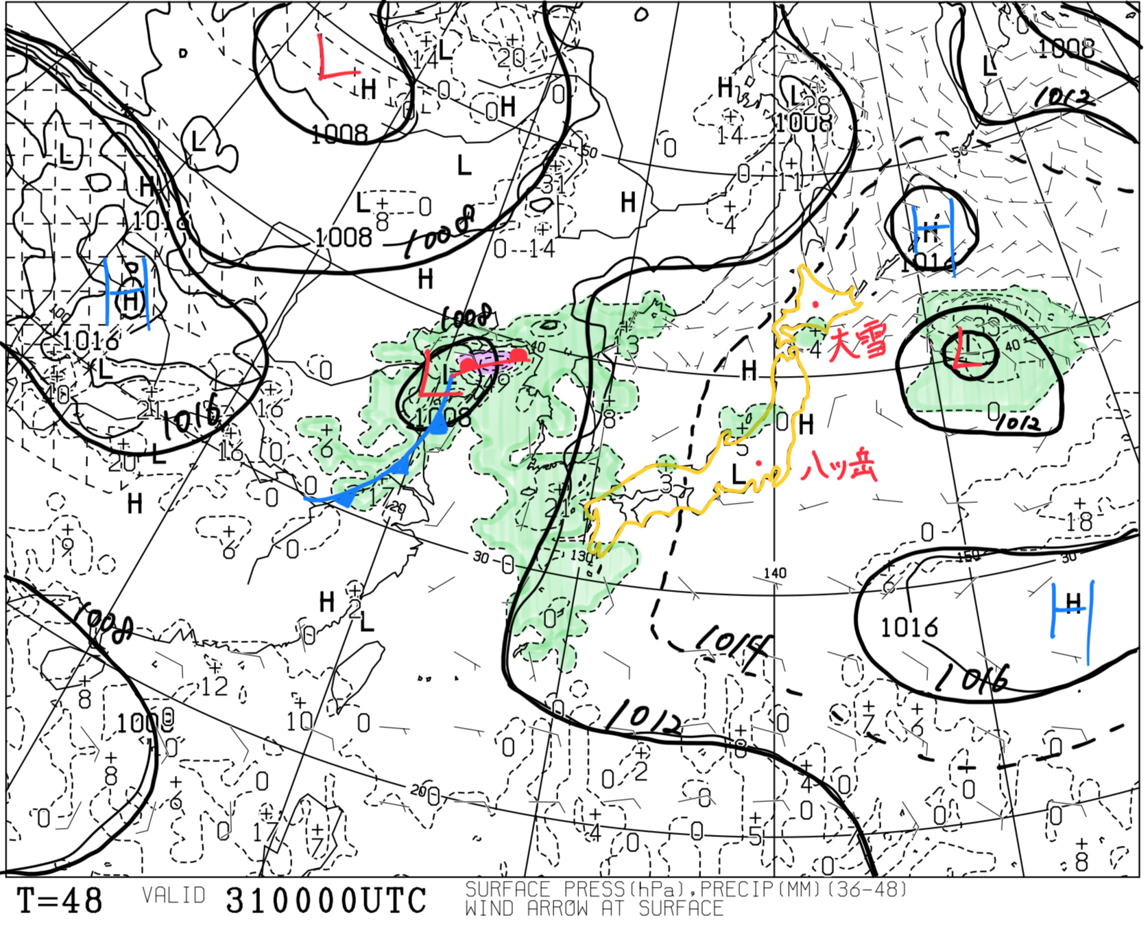 日々の天気図解析 2025/08/31 09:00の予想天気図:八ヶ岳・大雪山系