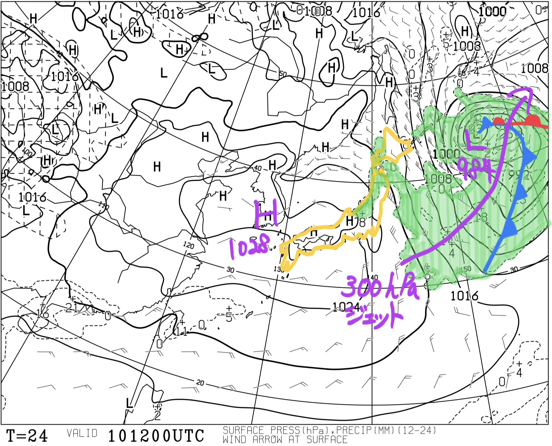 日々の天気図解析 2023/01/16 21:00の予想天気図