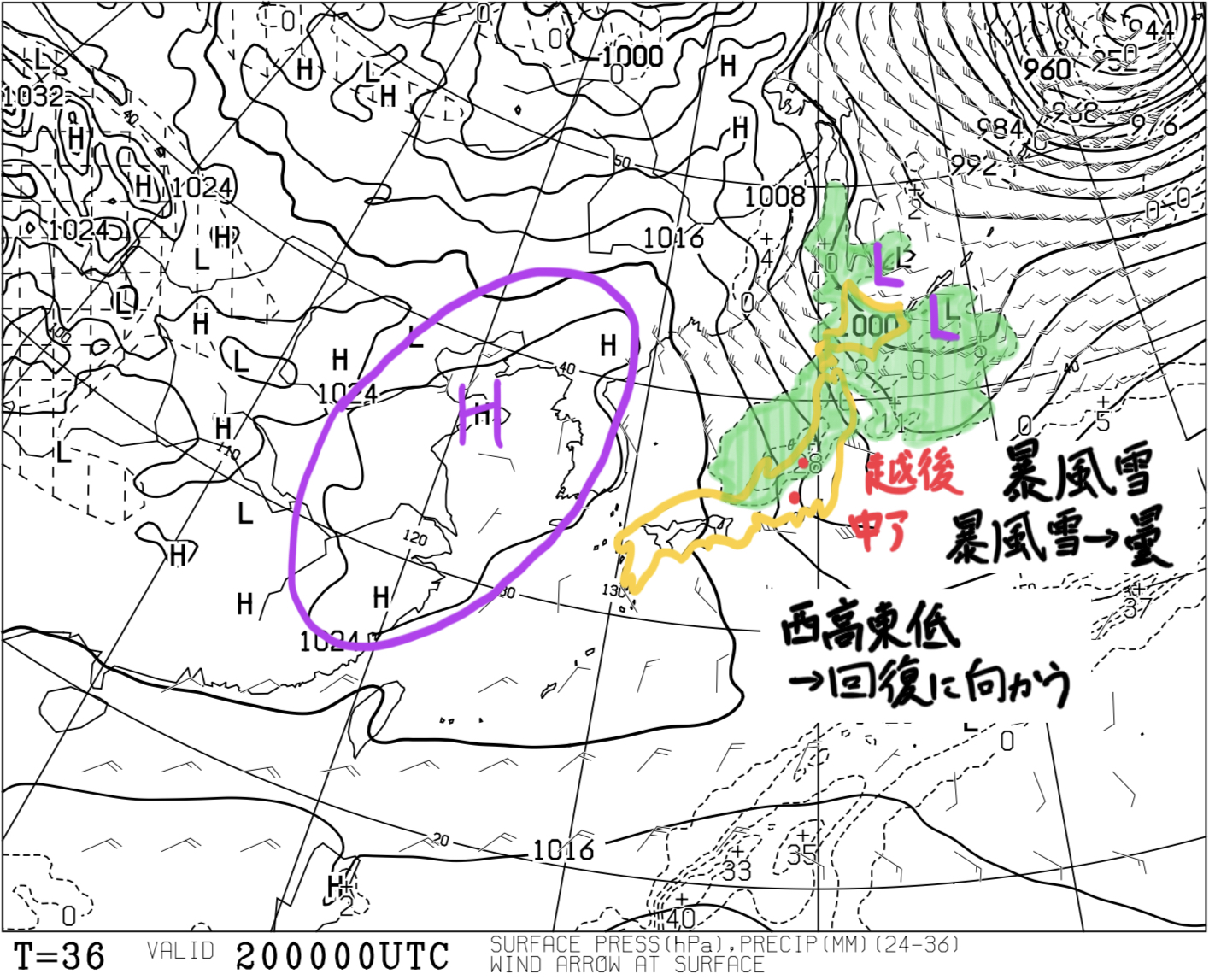 日々の天気図解析 2024/02/28 09:00の予想天気図:谷川・中ア