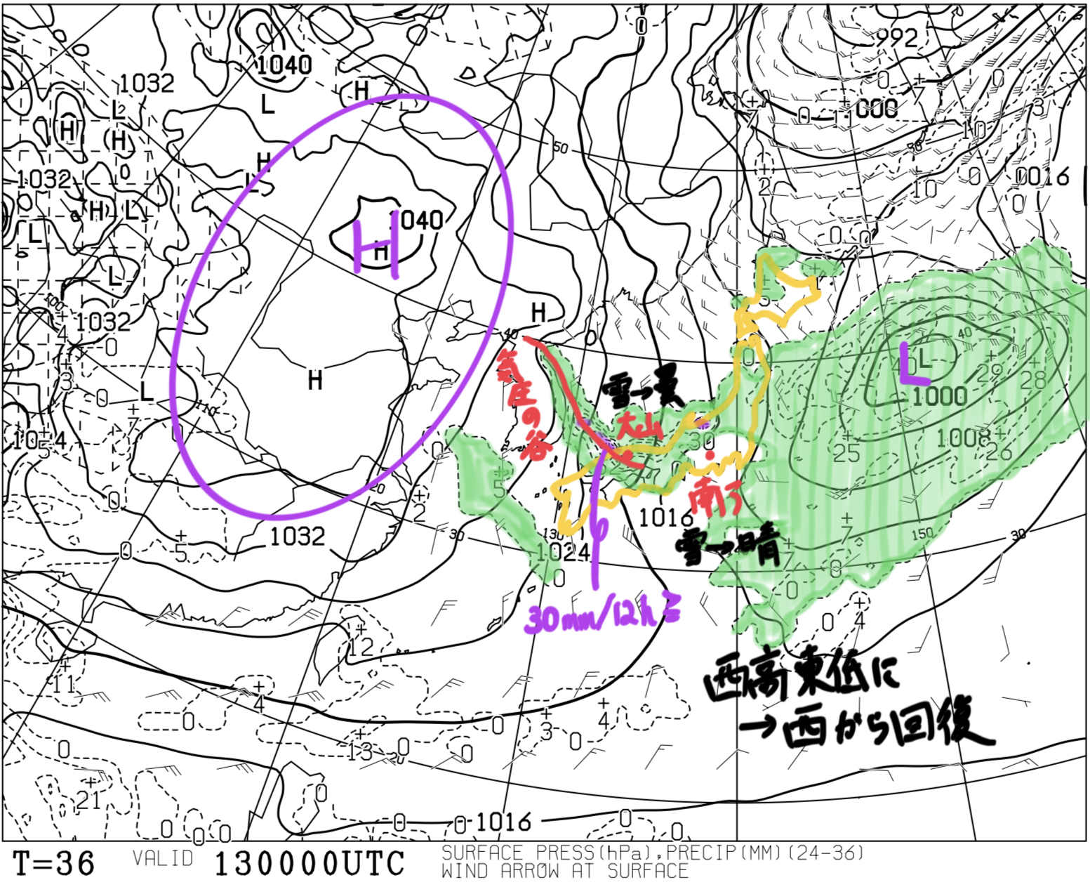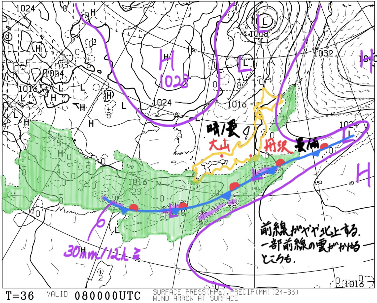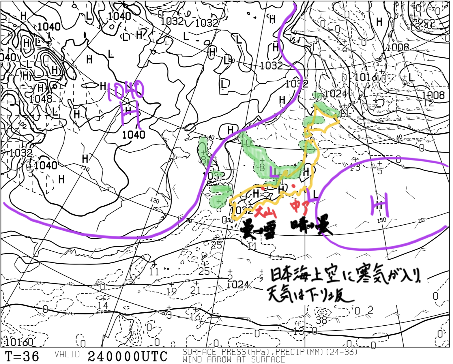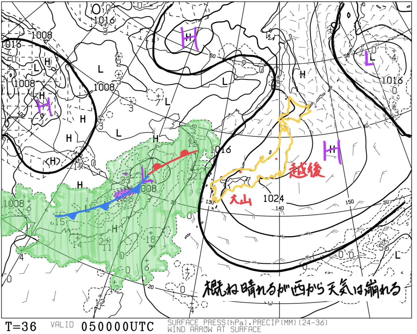 日々の天気図解析 2024/05/05 09:00の予想天気図:大山・越後
