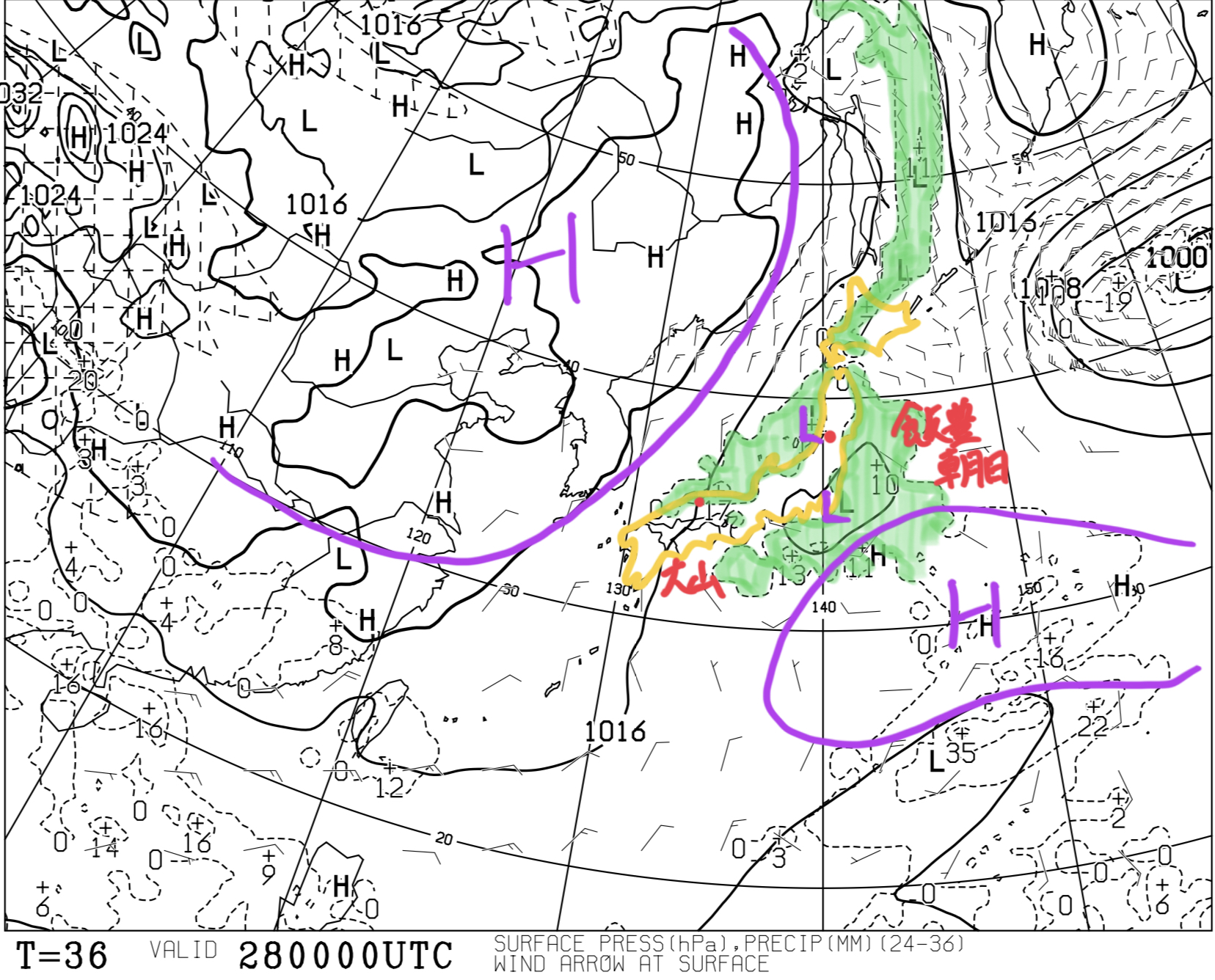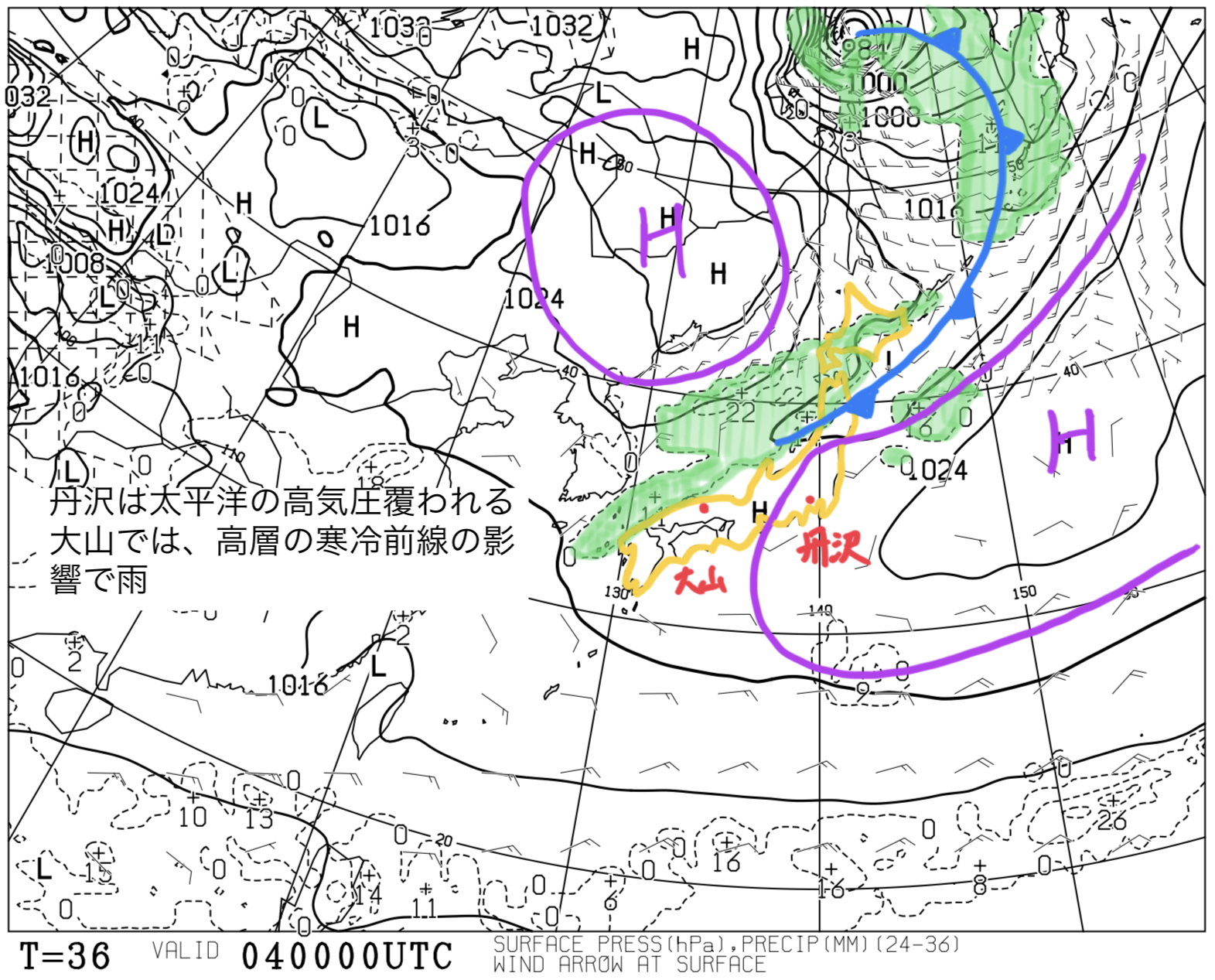 日々の天気図解析 2023/11/04 09:00の予想天気図:丹沢・大山