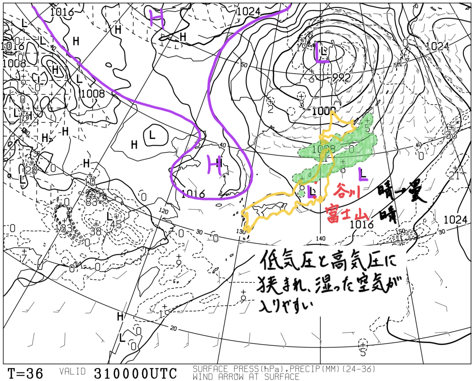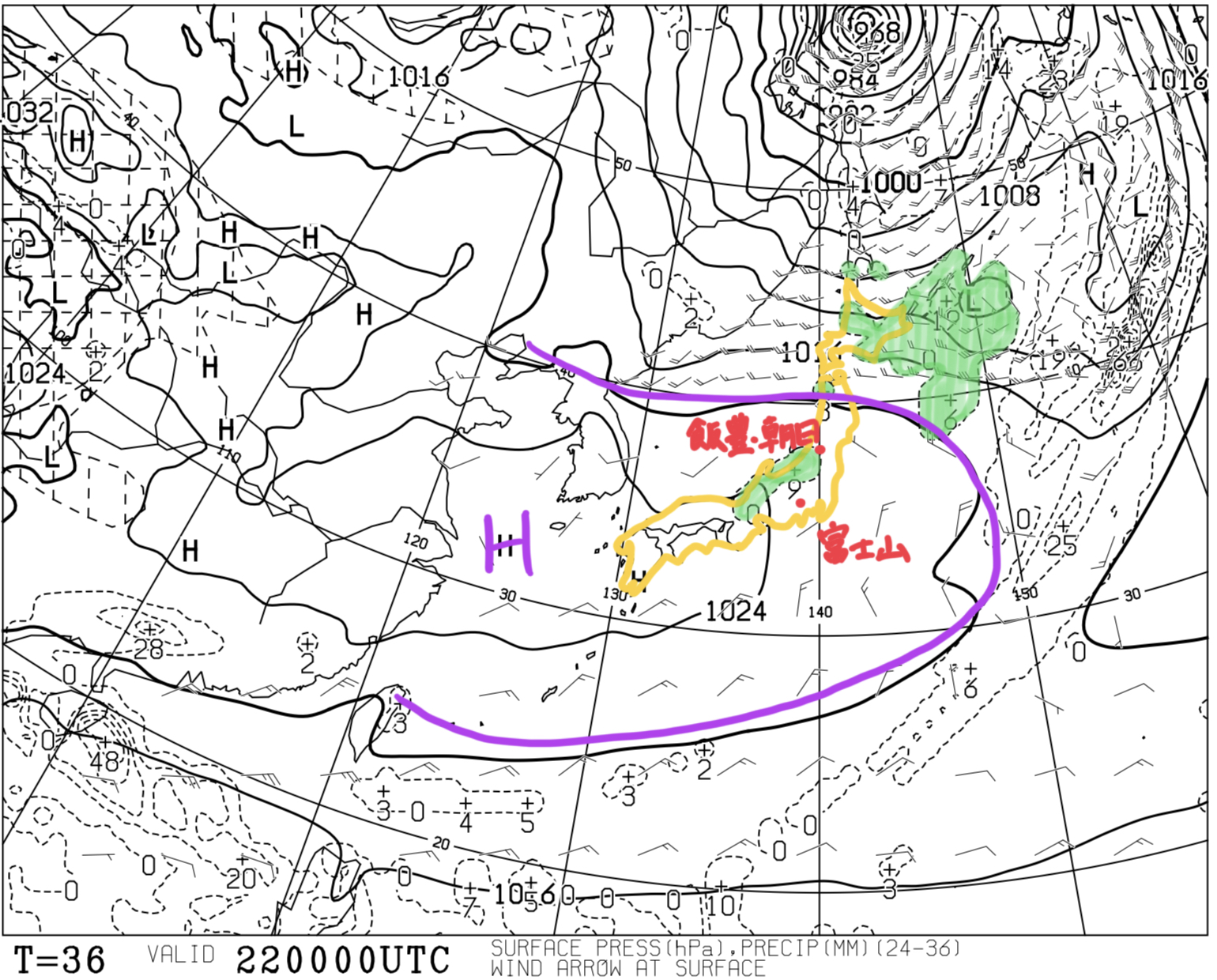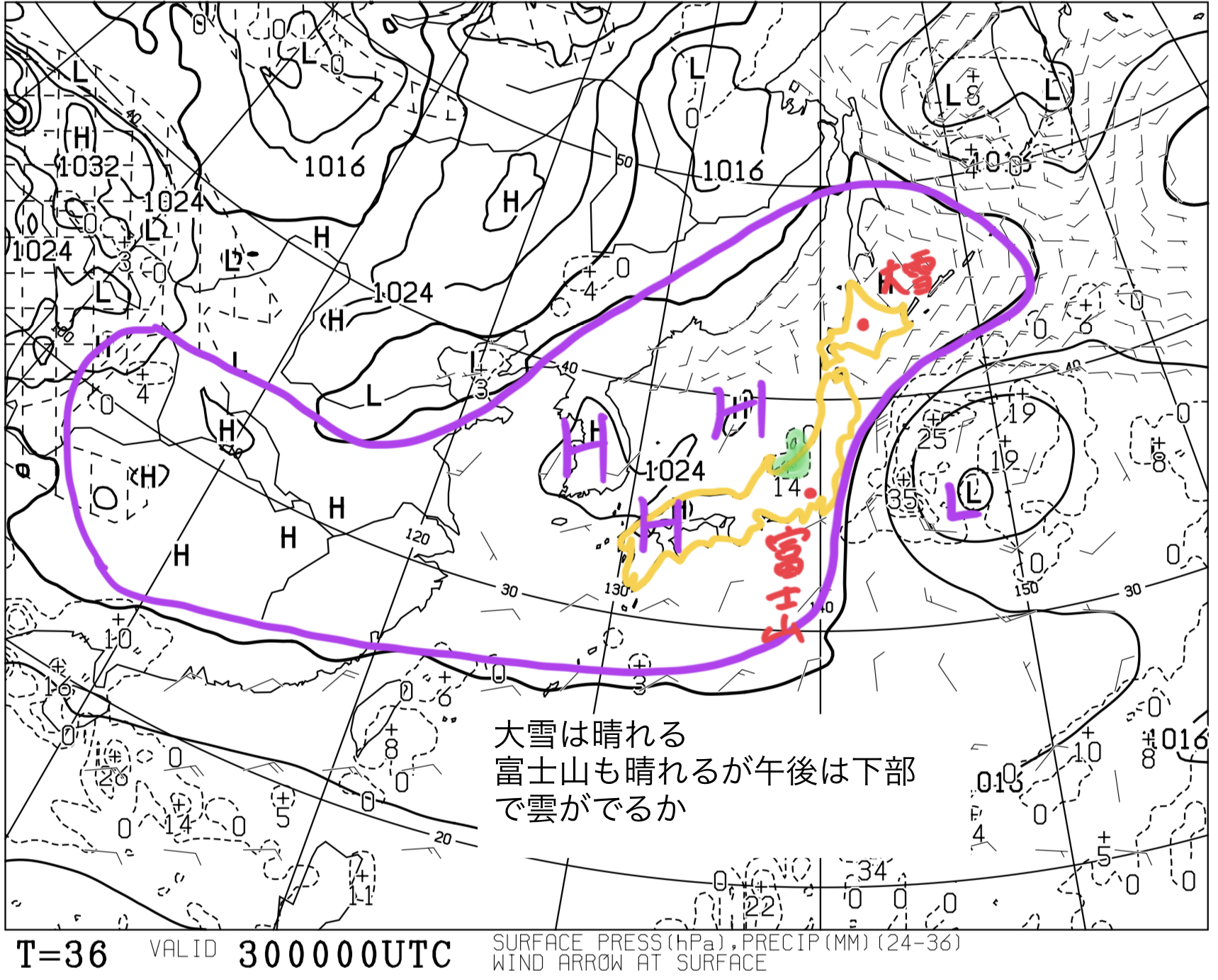 日々の天気図解析 2024/09/08 09:00の予想天気図:中ア・富士山
