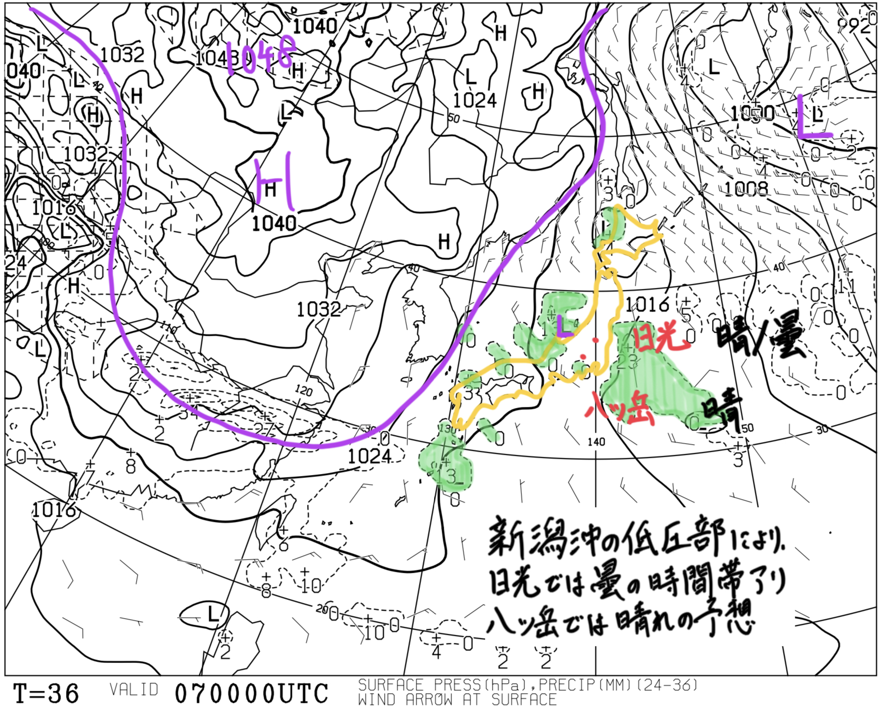 日々の天気図解析 2024/02/27 09:00の予想天気図:日光・大山