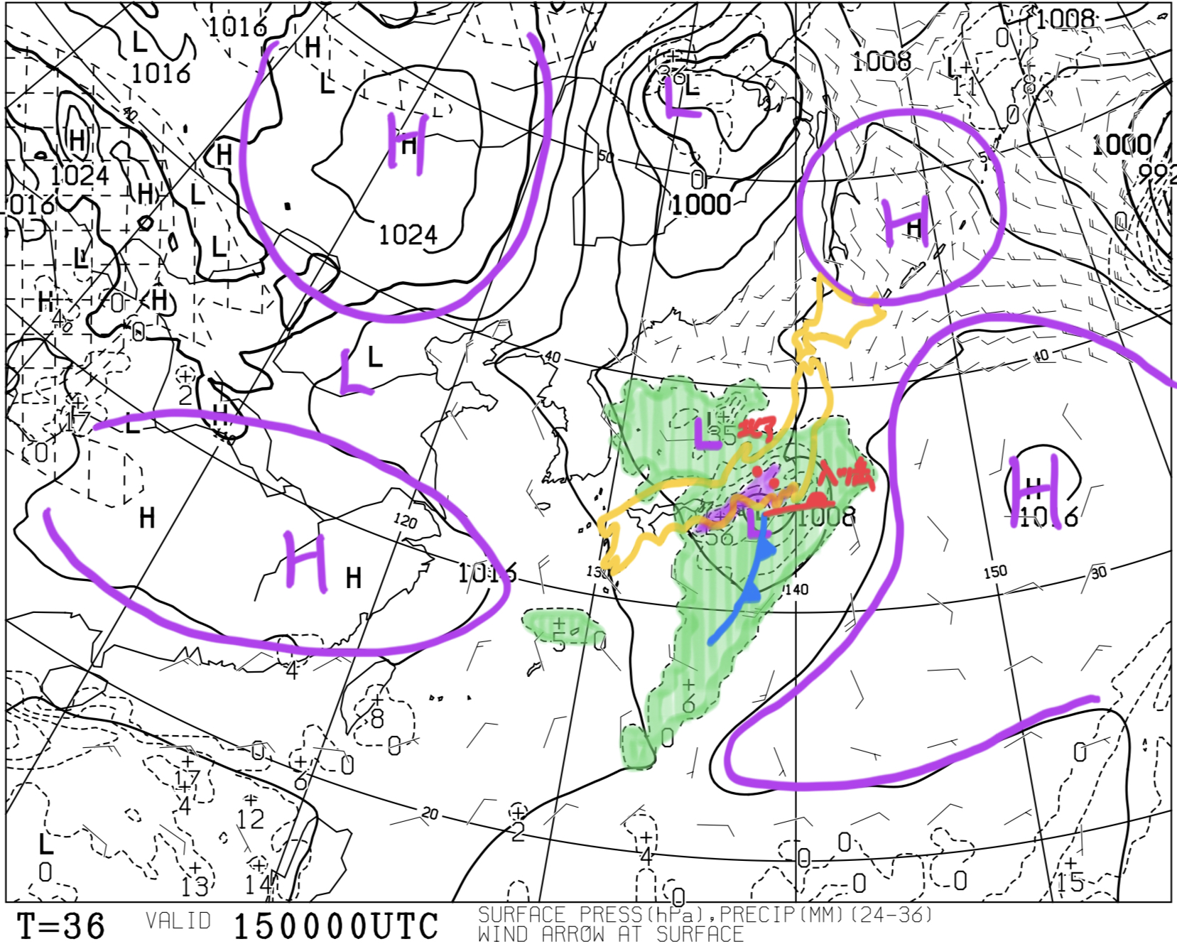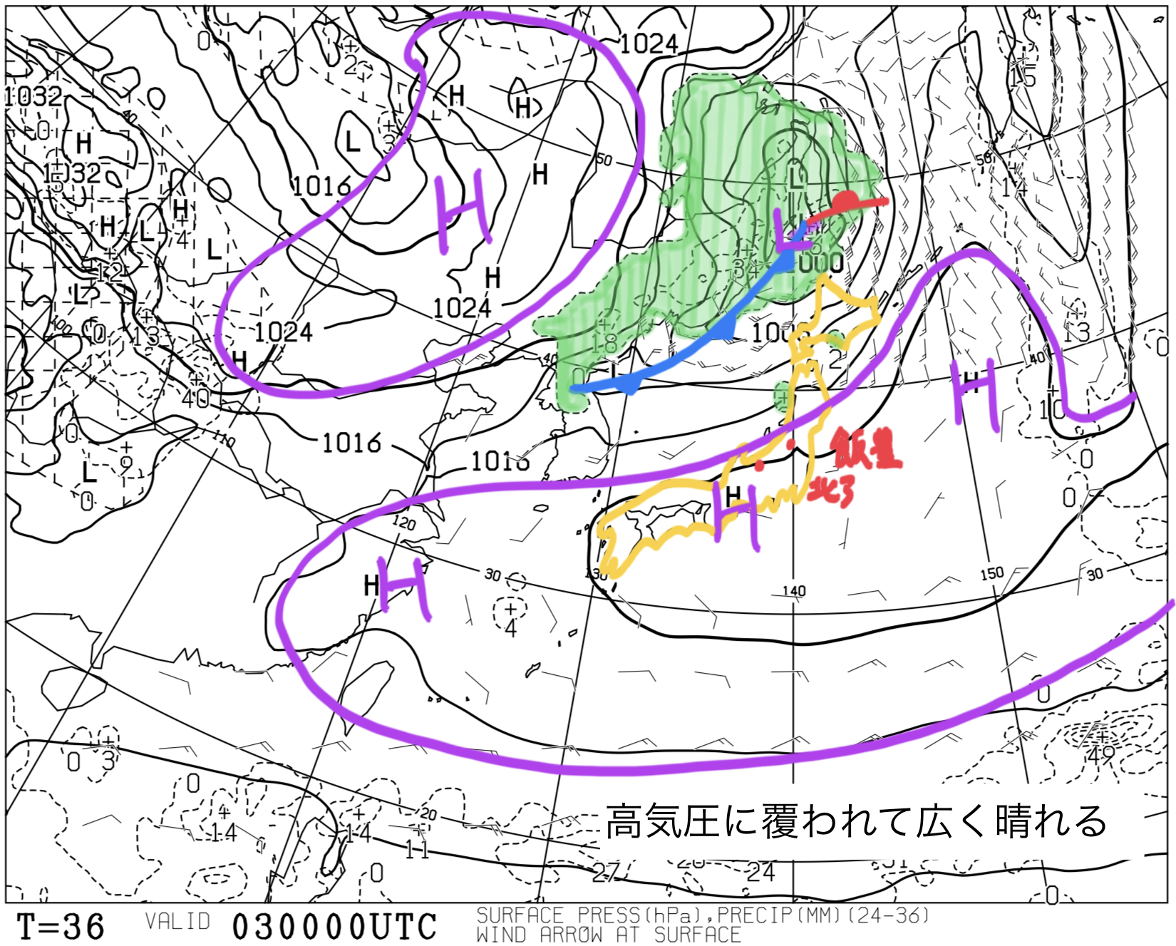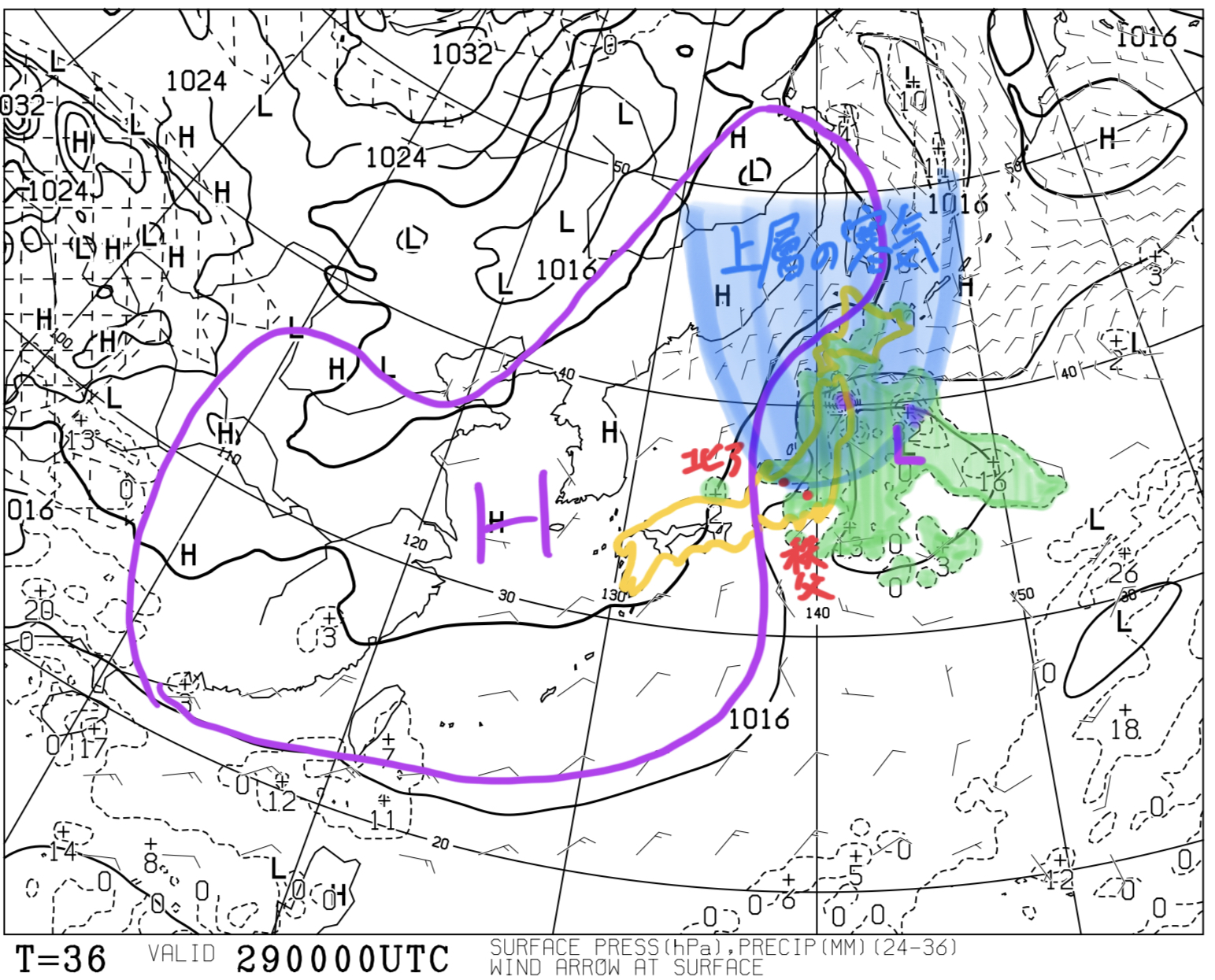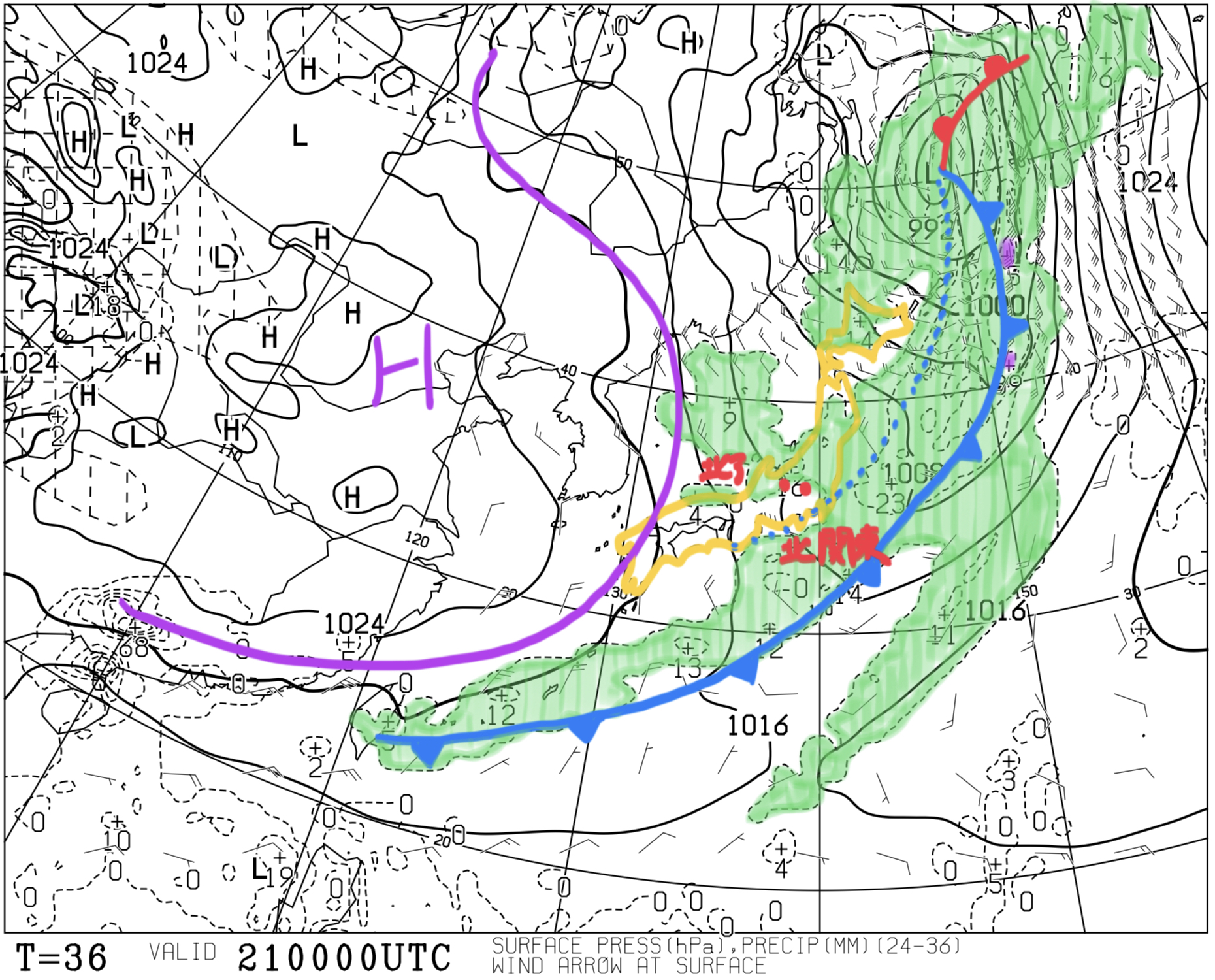 日々の天気図解析 2023/11/22 09:00の予想天気図:立山・富士山